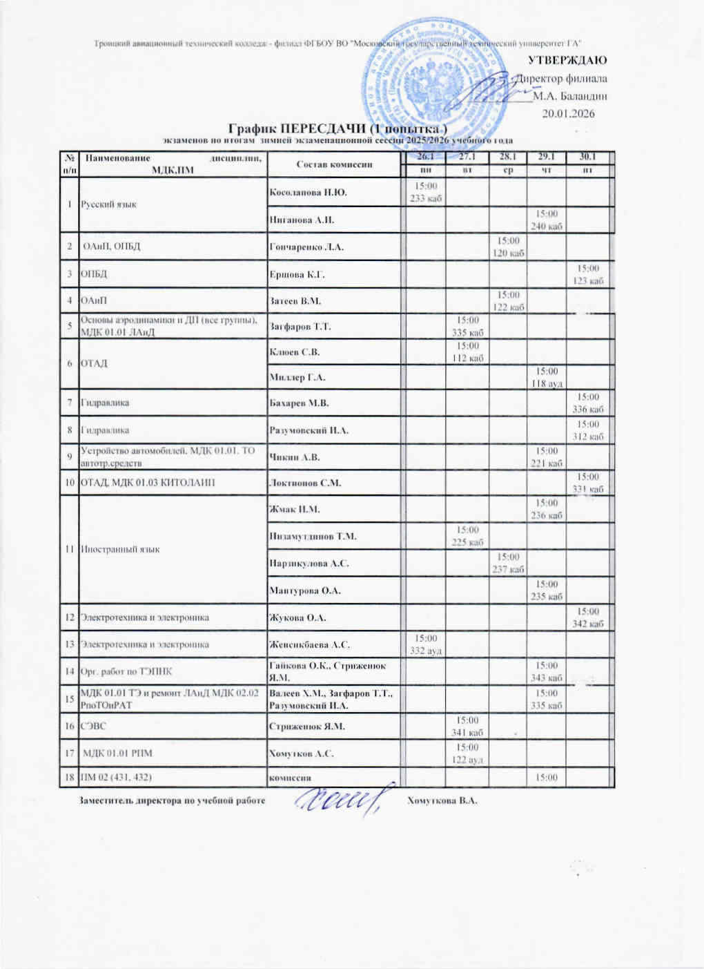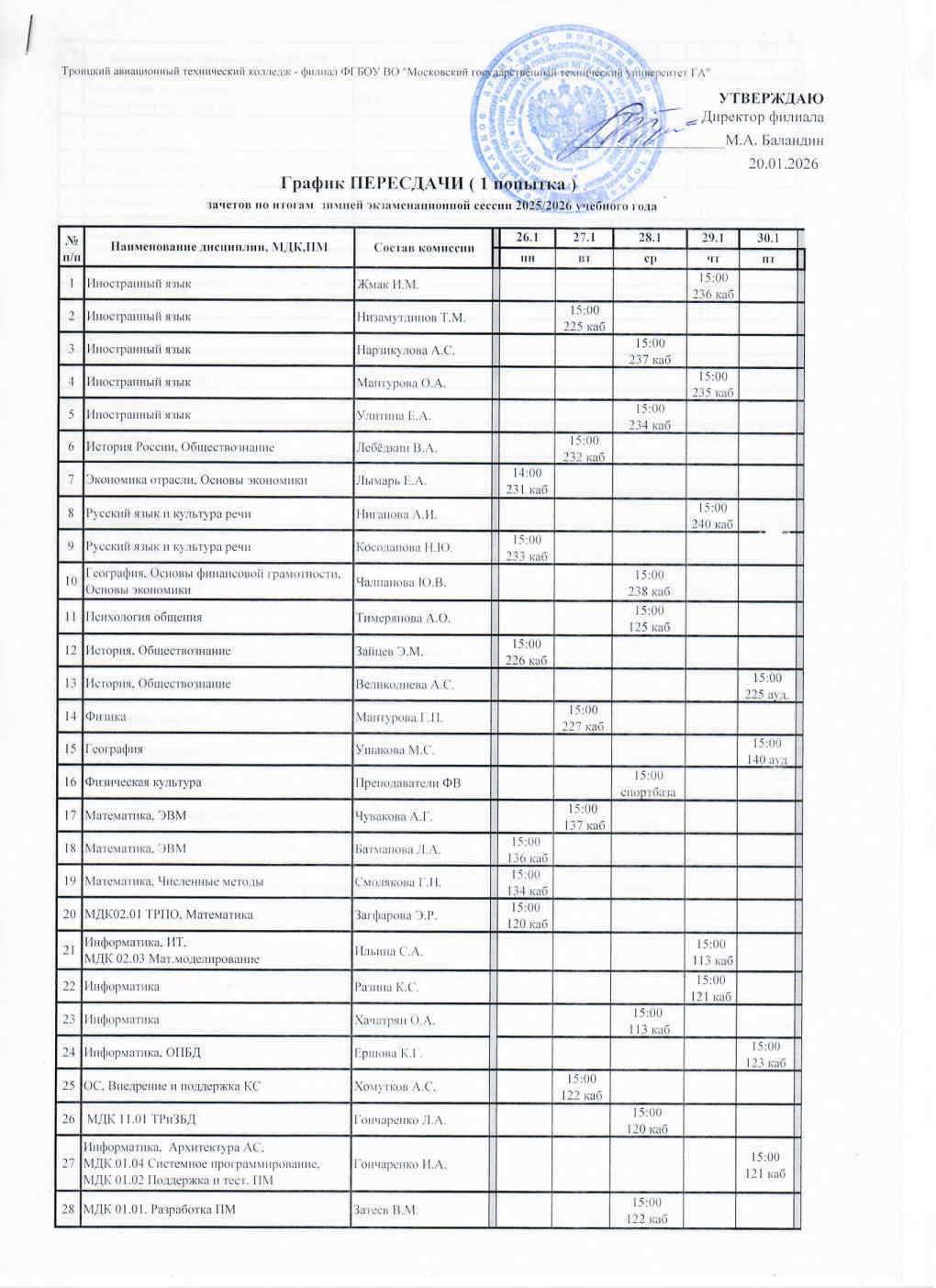 Графики пересдачи зимней сессии 25-26 1 попытка